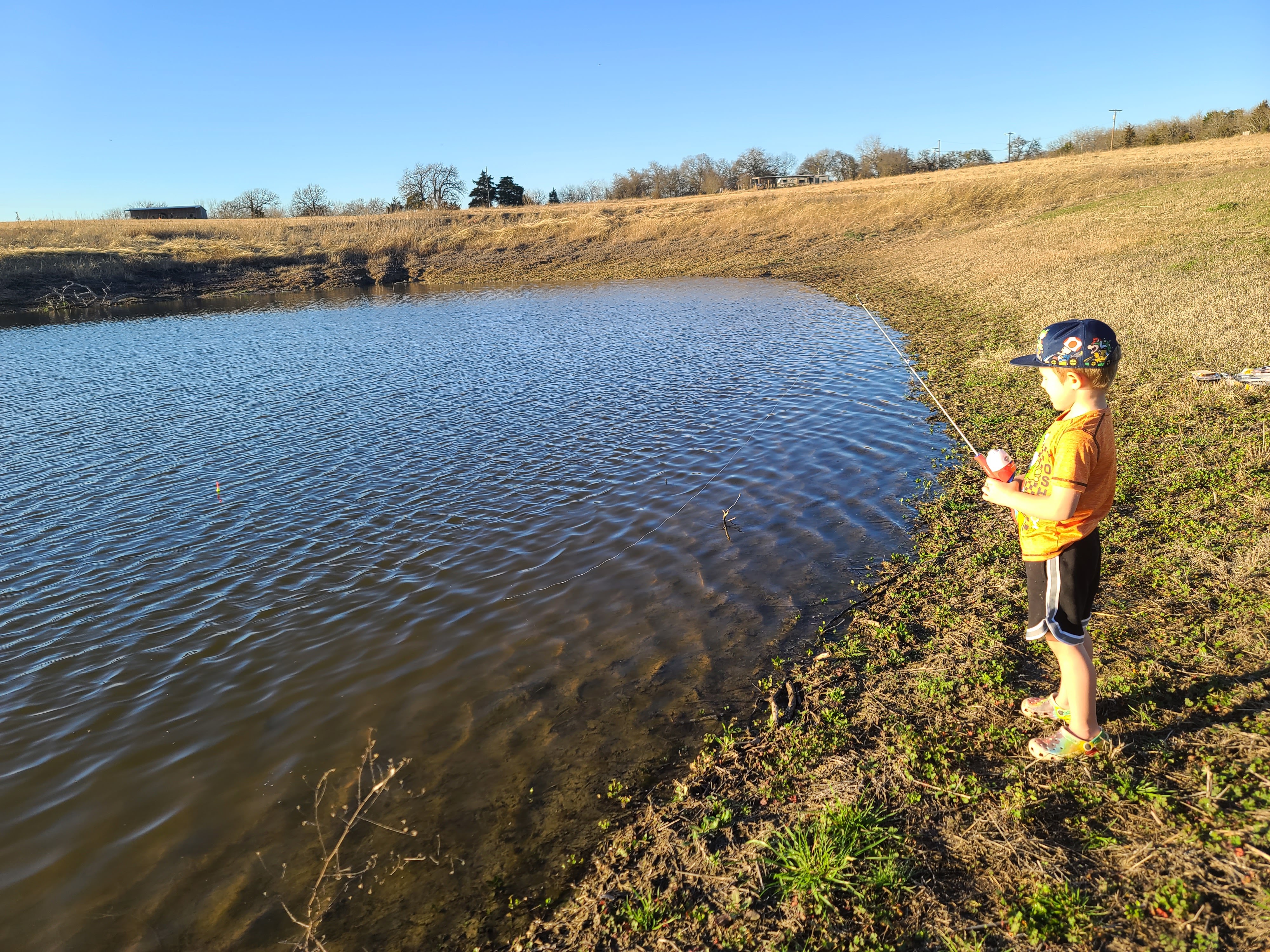 On the outskirts of Waco, just a few miles out, is a beautiful farm that is associated with HipCamp. The owner has her own property fenced in with a pond, which we were given access to for fishing. Our property area was adjacent to hers, relatively flat with a small wooded area.