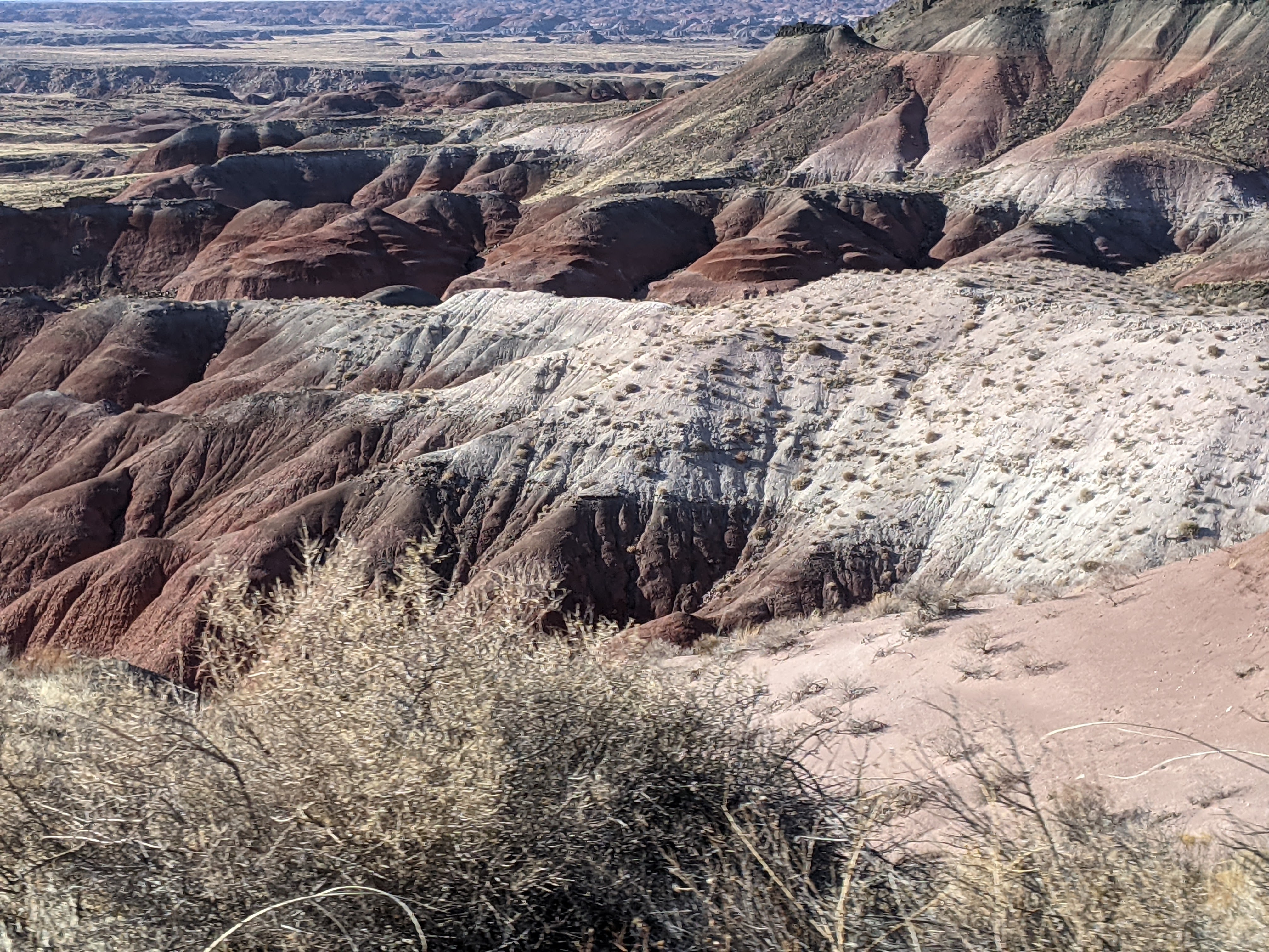 The painted desert peaked out from the earth in striped colors of red, brown, and white. Sometimes, the painted ground would form what the park refers to as teepees rather than hills. Overall, the desert was stunning.