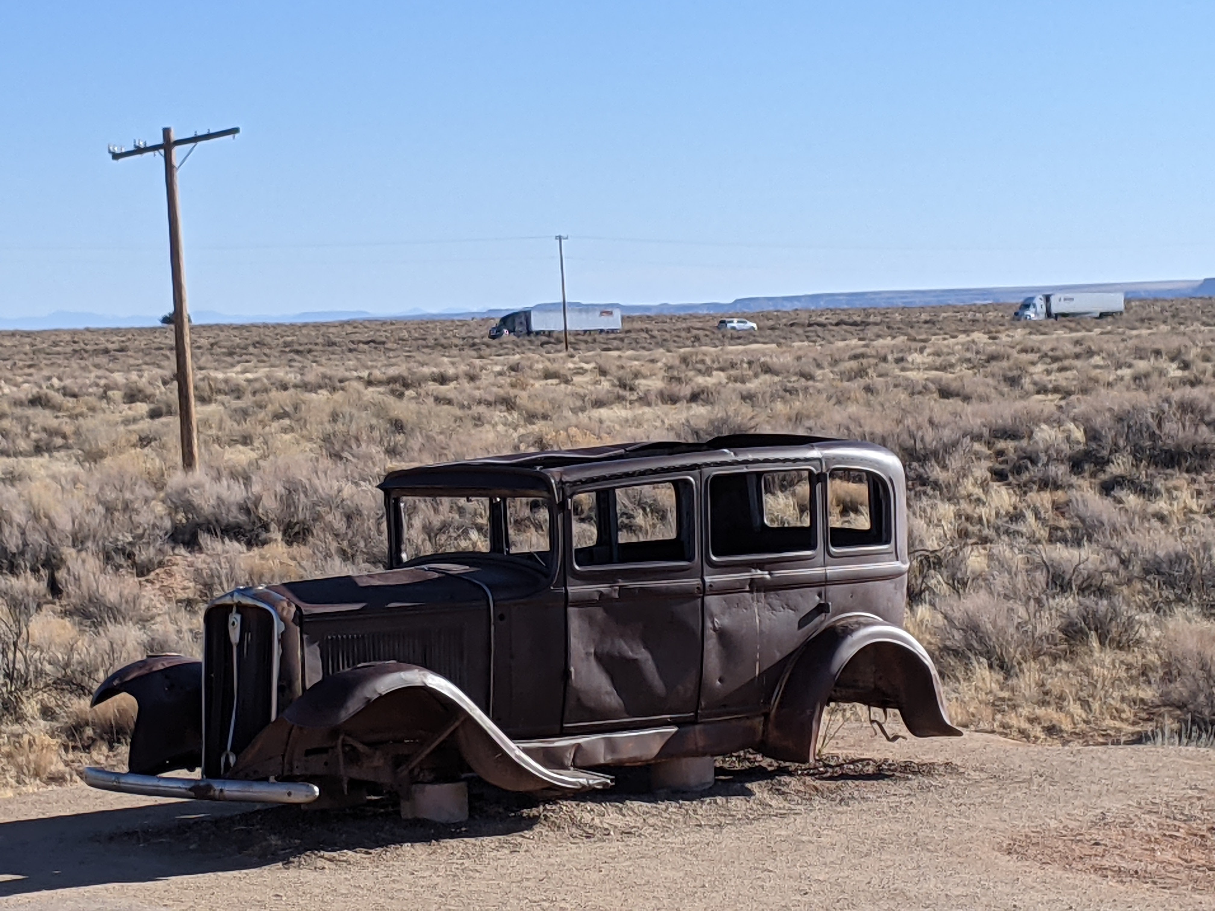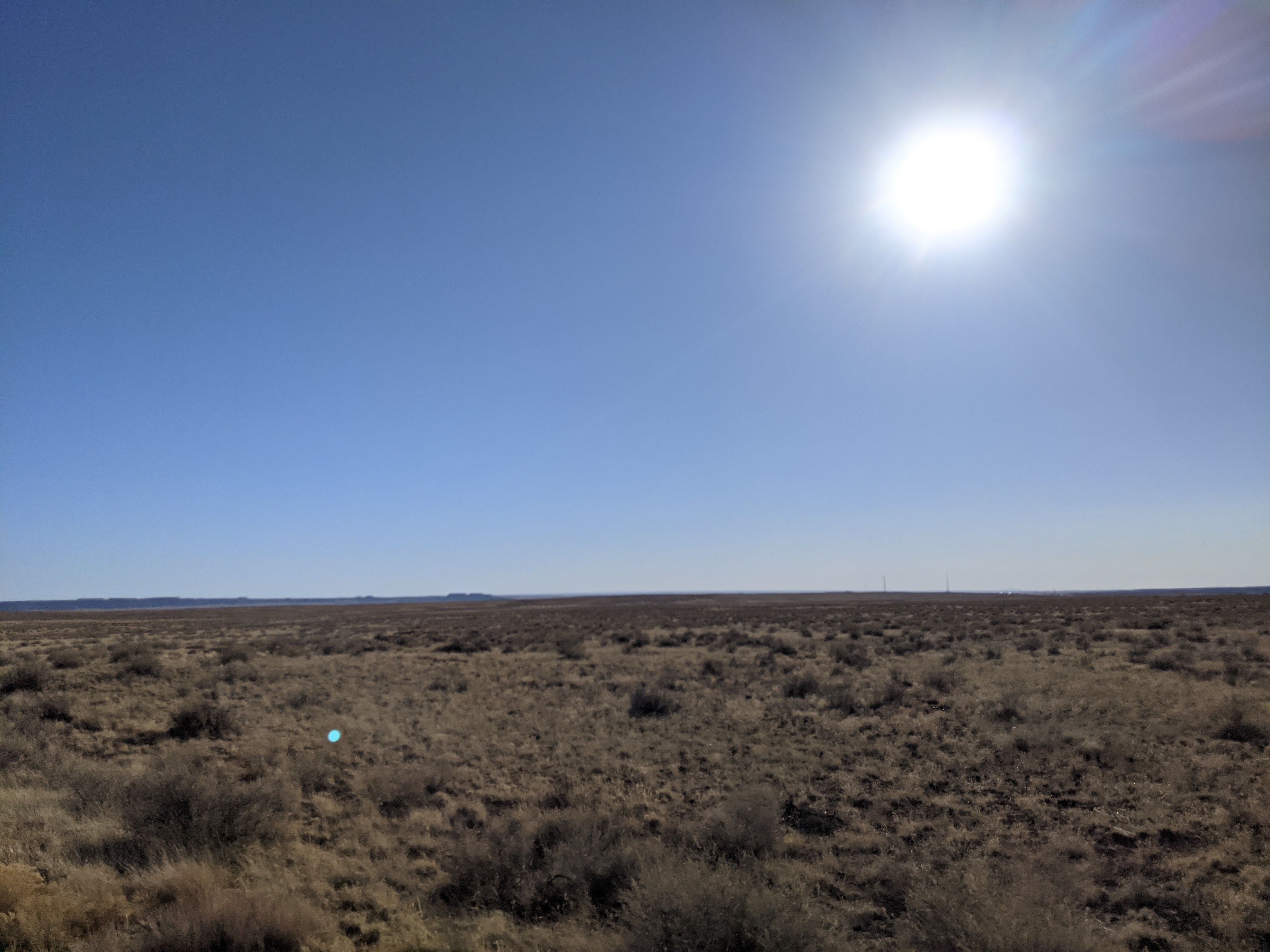 The Petrified Forest was our favorite experience in the park. Parking at a lot, we walked a paved trail through an area covered in petrified fallen logs. The rainbow colors were beautiful and they occasionally crystalized, sparkling in the fading sun.