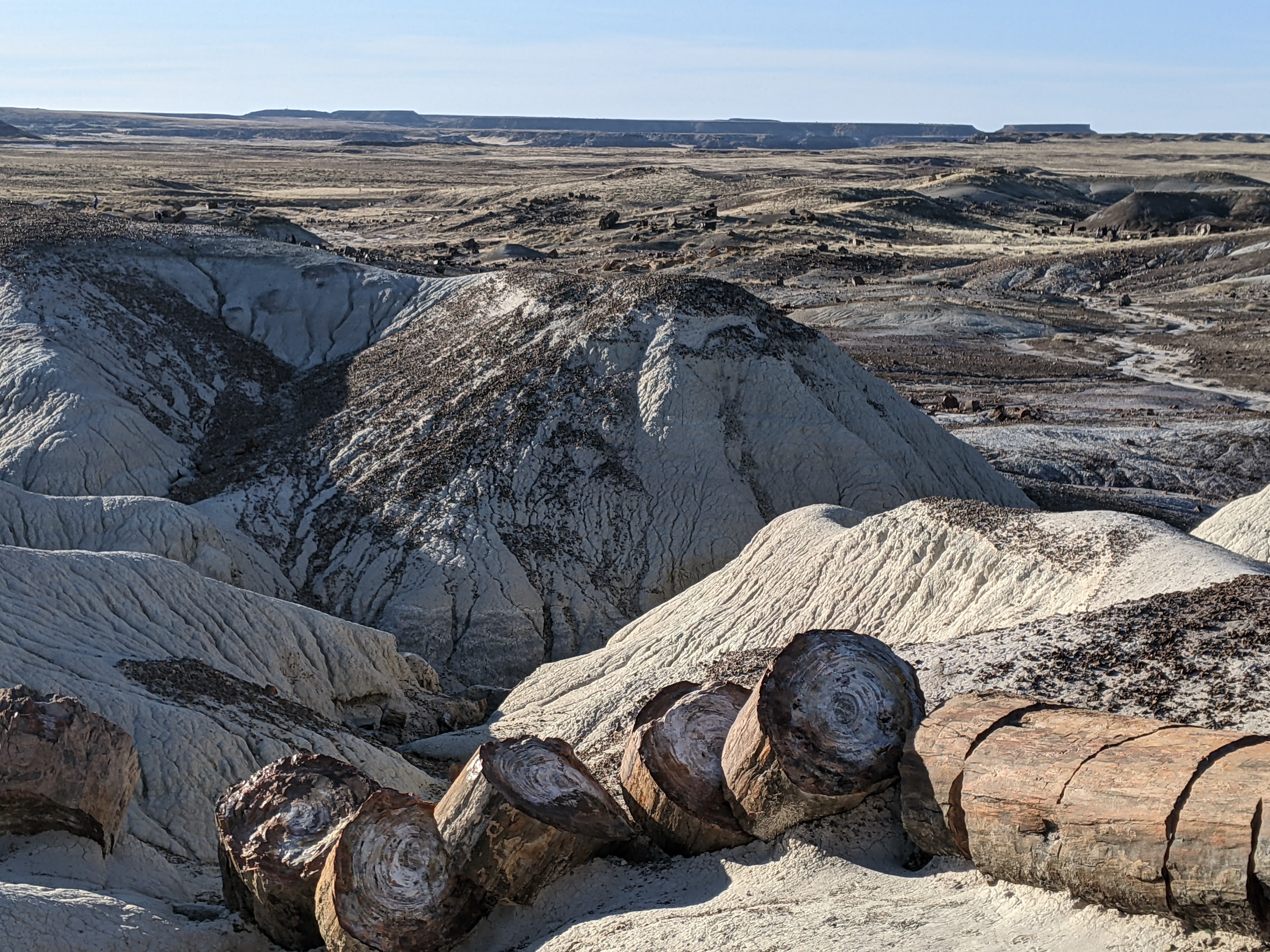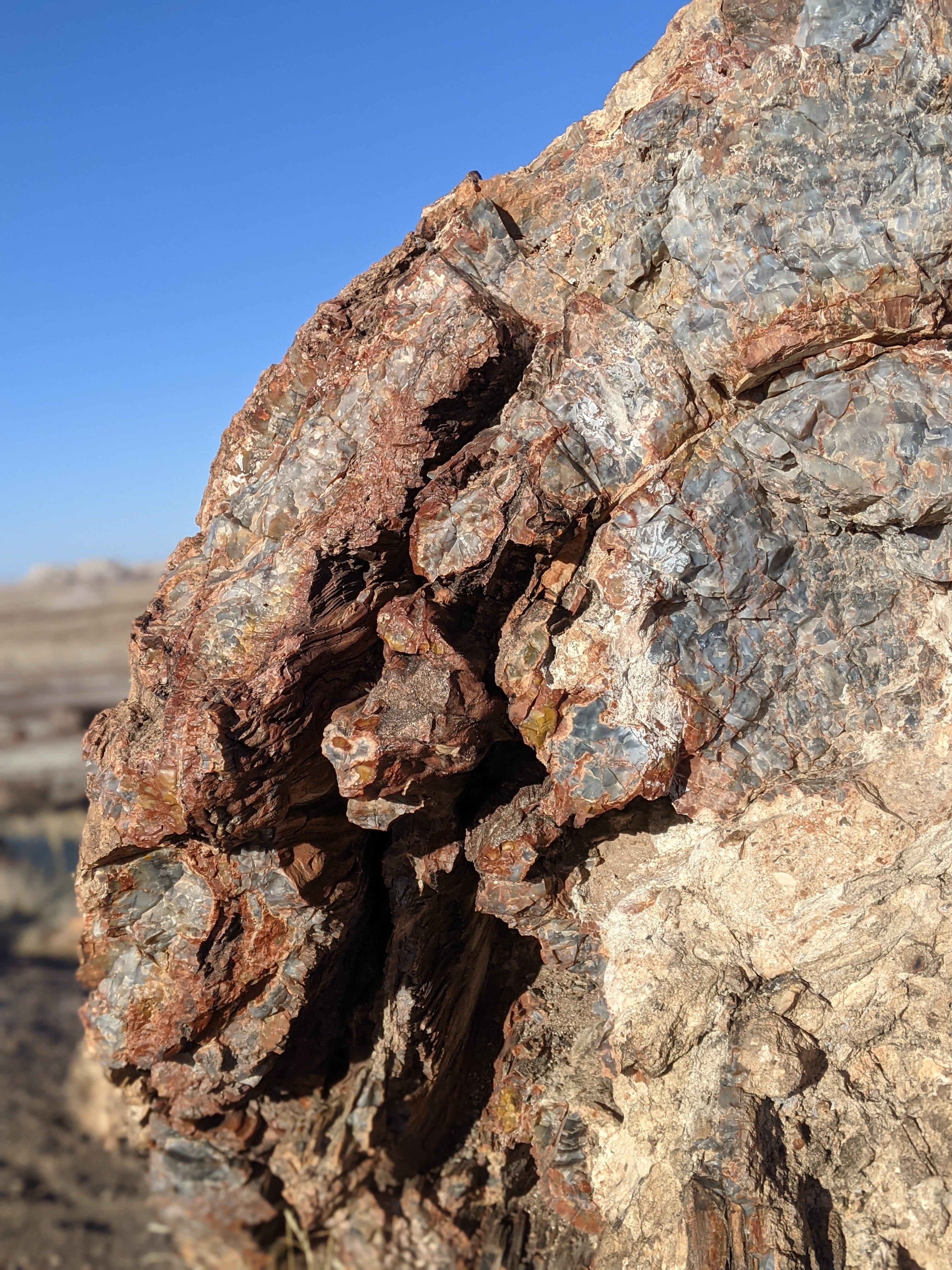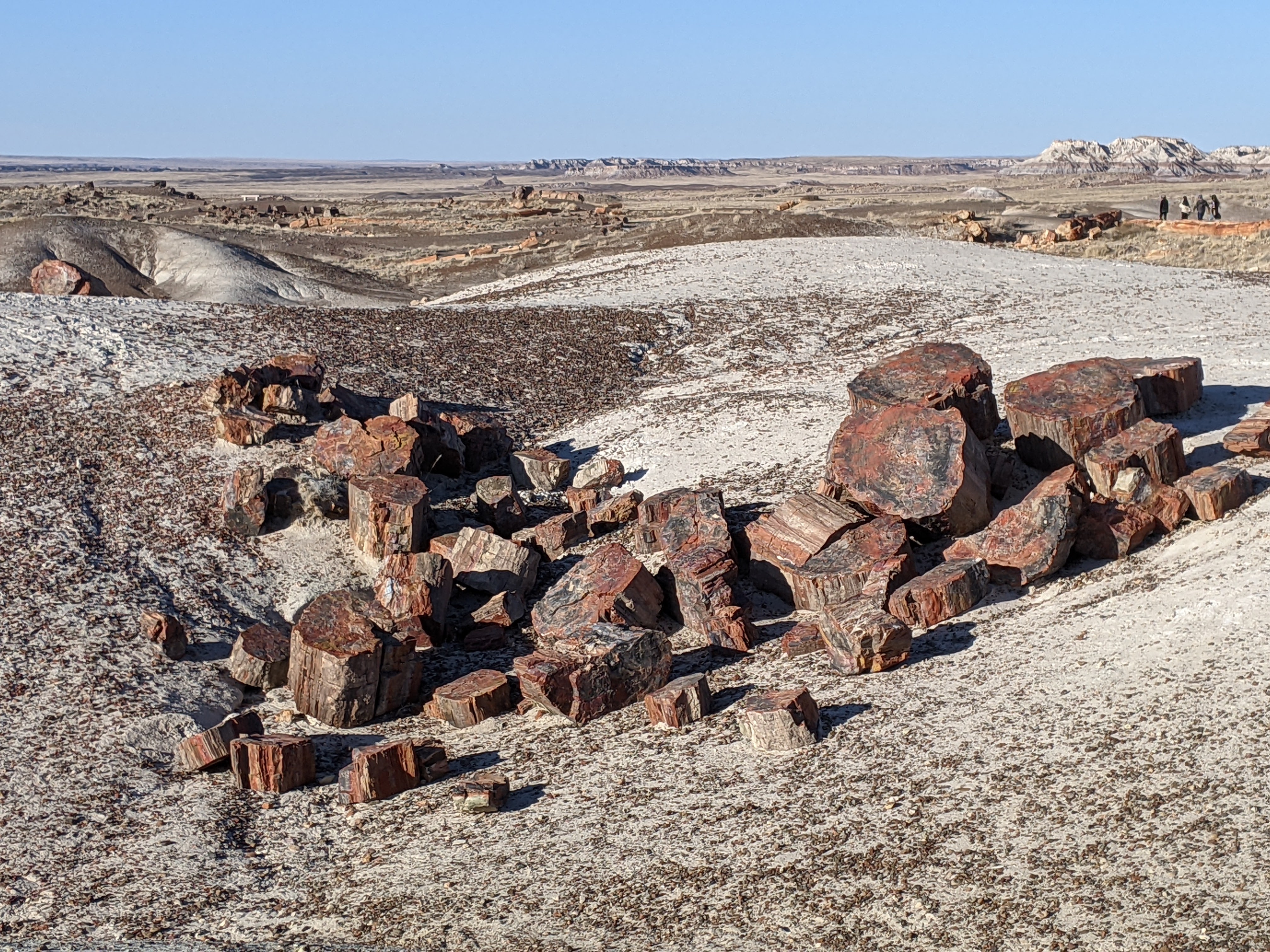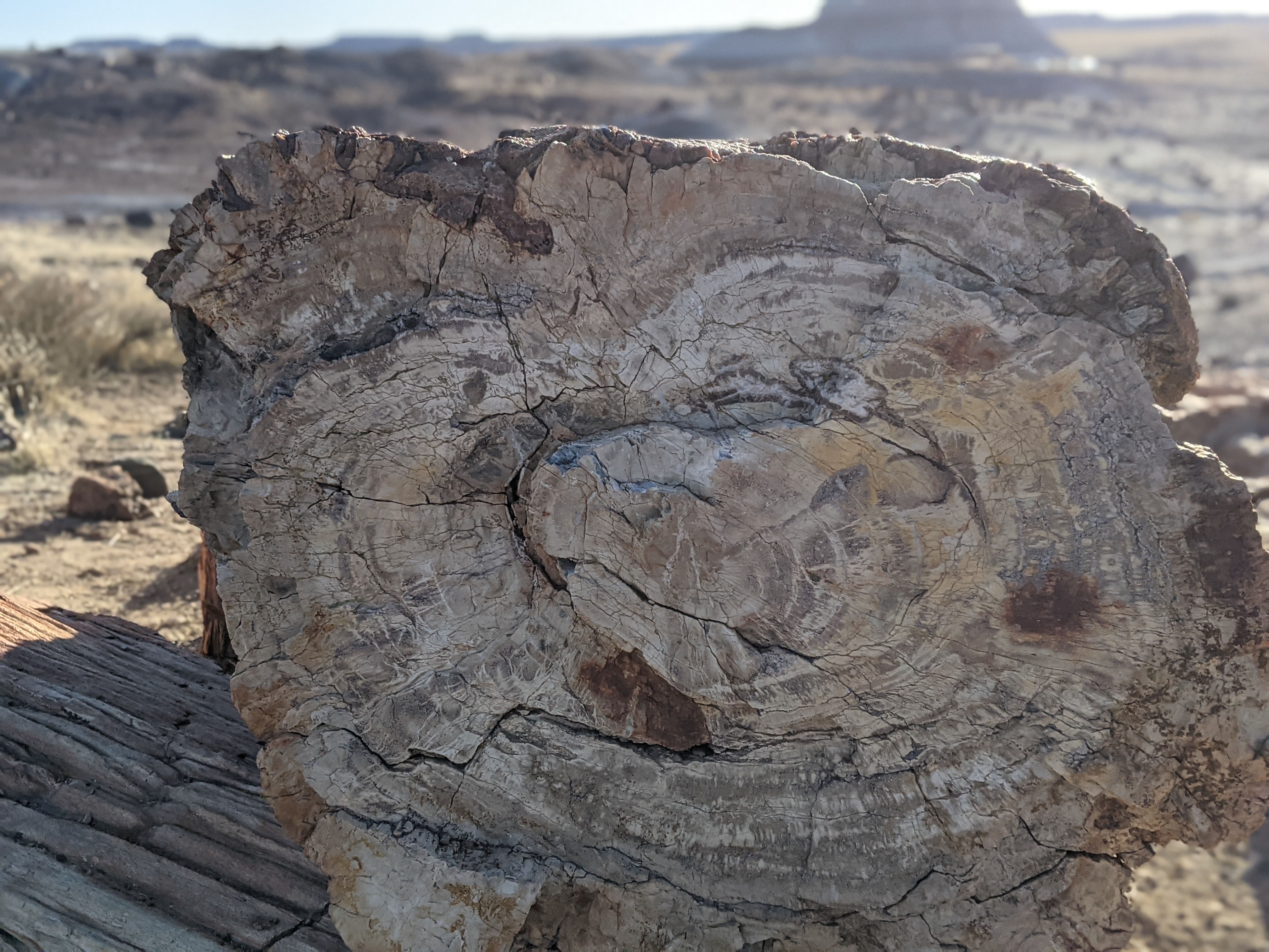 Fun Fact: The wood seen here is over 200 million years old. The logs were washed into a river where they were covered with so much water and sediments that oxygen was cut completely, slowing their process of decay. The quartz within these petrified logs is so easily broken that they broke off into chunks, as if they were cut by a chainsaw. This info is found here if you want to research further. https://www.nps.gov/pefo/learn/nature/petrified-wood.htm