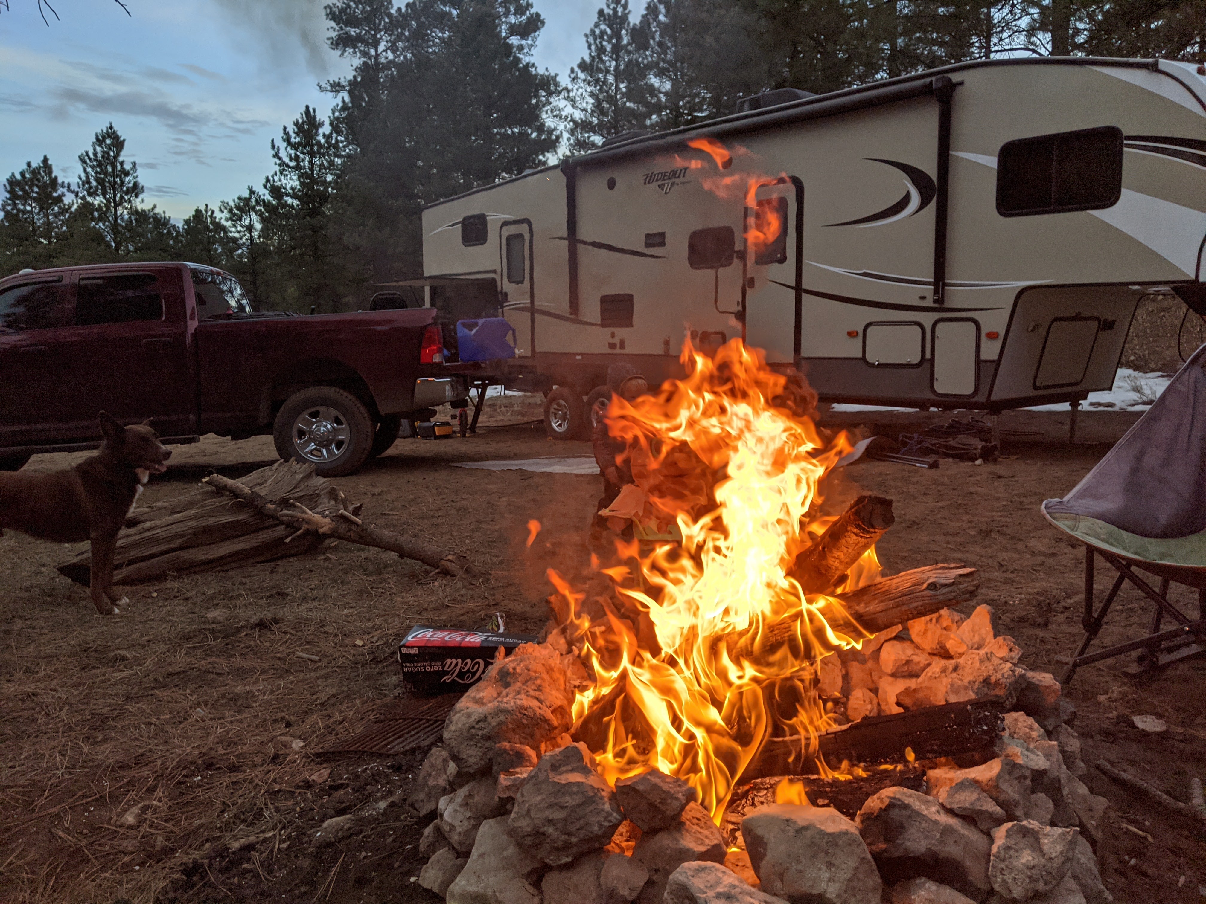 By Friday, we decided to officially move camp to Flagstaff. Using our handy app Free Roam, we were able to find public land to boondock and found a spot without much effort. We were all so surprised by the ground. The dirt/sand looked wet but when touched it felt fluffy, almost bouncy. The consistency was like none we have felt before. The kids ran and played without worry of falling, as the ground was not the least bit firm. It was similar to playing on the beach after the waves have just lapped up the shore. With the ponderosa pines towering over the clearing, it instantly became our favorite place to camp.
