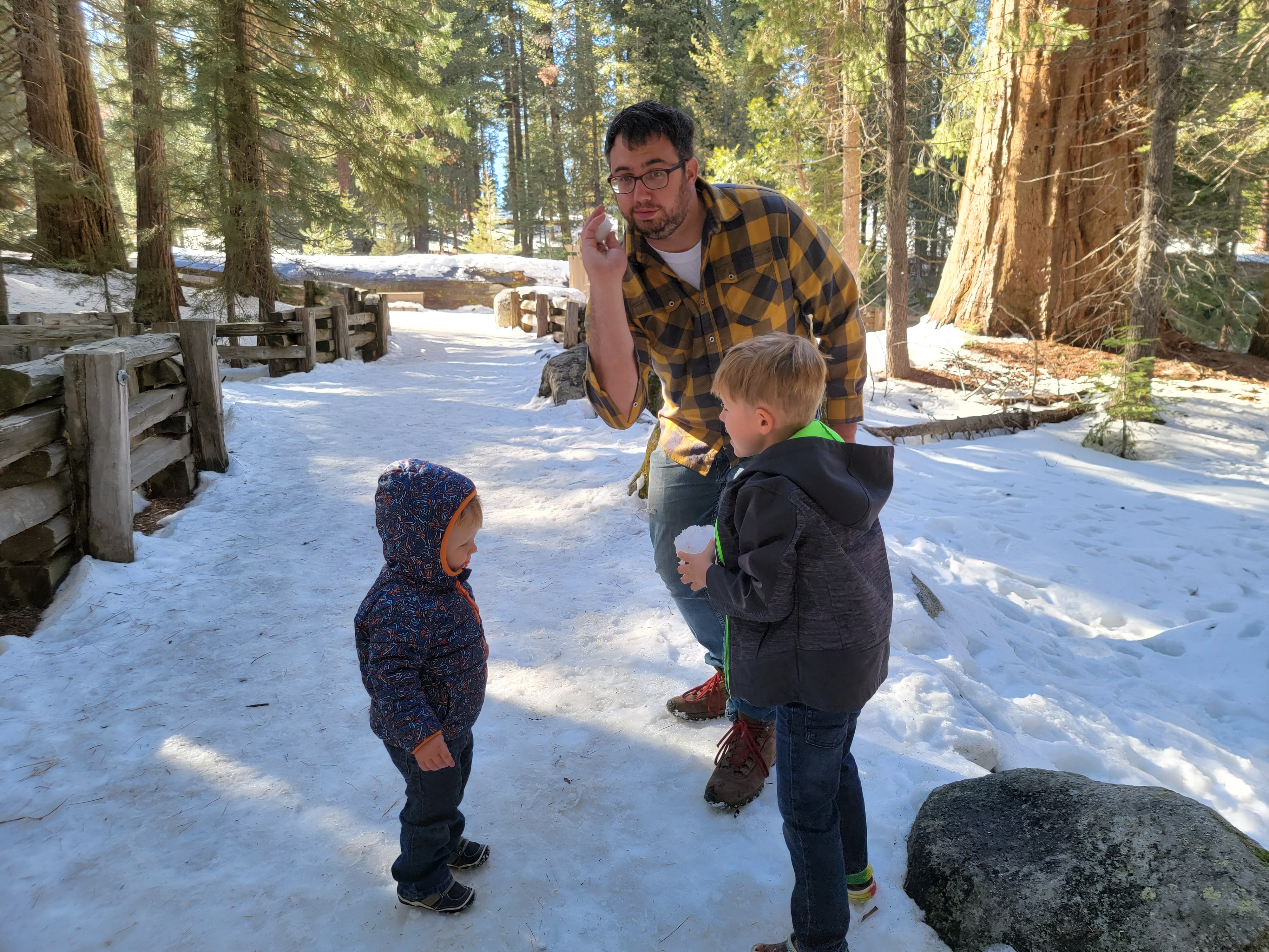 The park has winding trails that go through just the giant sequioa’s. We attempted to weave our way the best we could; however, the snow and ice made conditions difficult. Instead, we decided to embrace the moment and had an old fashioned snow ball fight. We were all pretty wet on our 3 hour drive back, but it was absolutely worth it. Dinner was enjoyed next to the river at a little moutain restaurant. We truly couldn’t have enjoyed a better day.