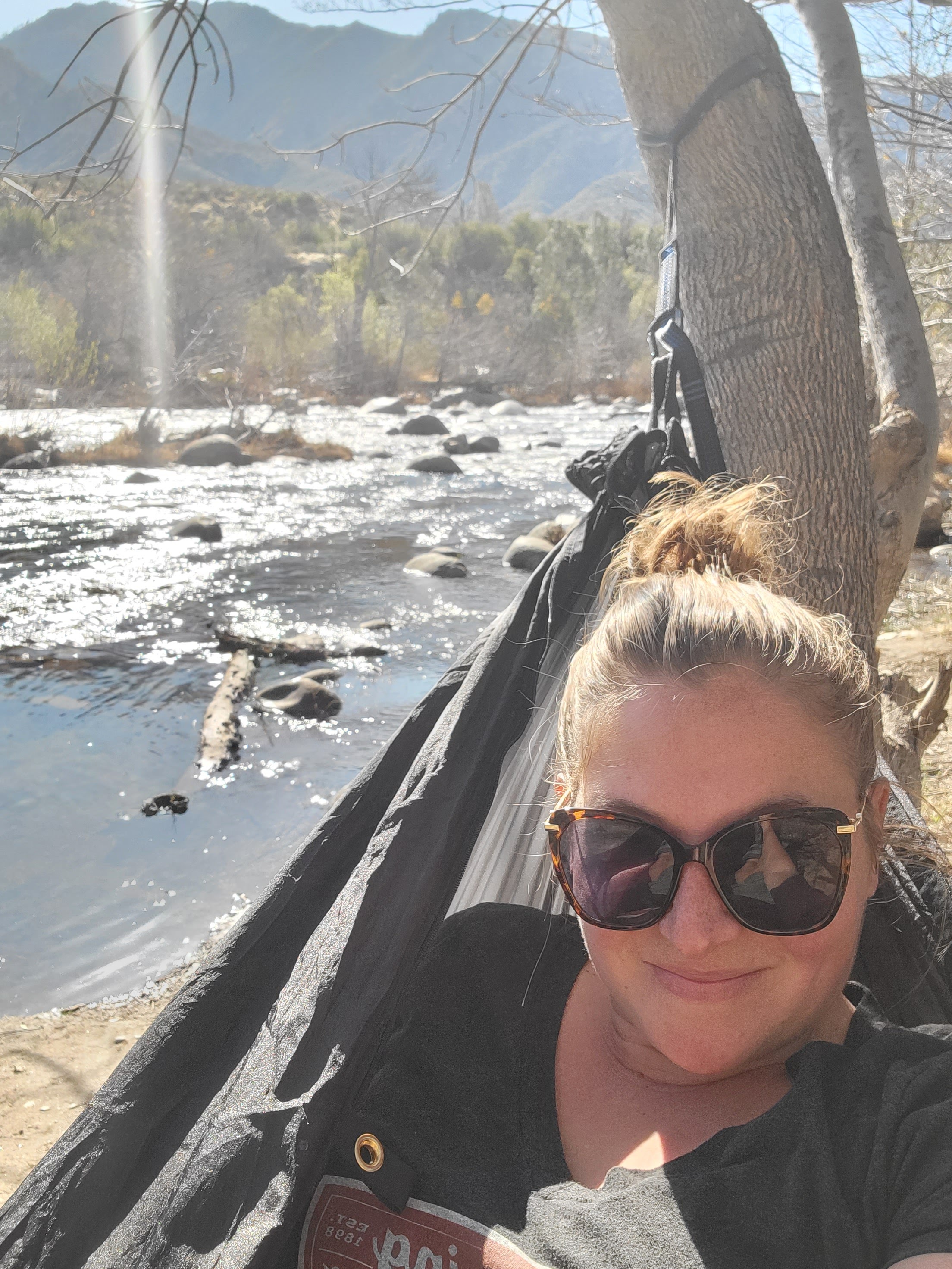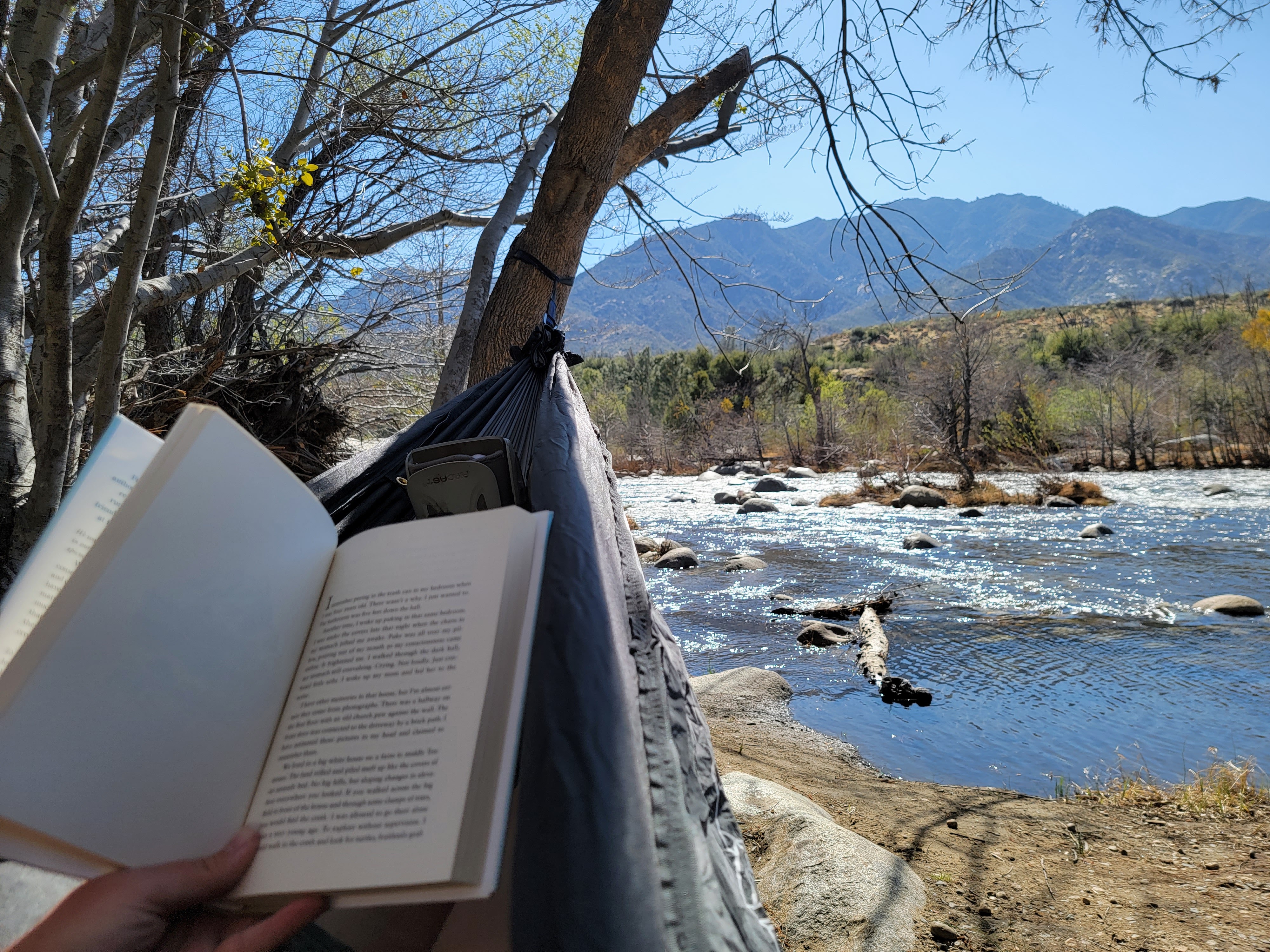 As I had said earlier, we chose our campground because we were close to the trail of 100 giants (sequoia trees). Typical of our adventures, it was closed down due to snow. Despite it, we didn’t regret our choice of town. I relaxed more here than I have in a very long time. One afternoon, Daniel watched the kids and told me to take the hammock somewhere. I found the most relaxing spot in the Sequoia National Forest, right on the river. Spending the afternoon reading, enjoying the river, and embracing the mountain views.