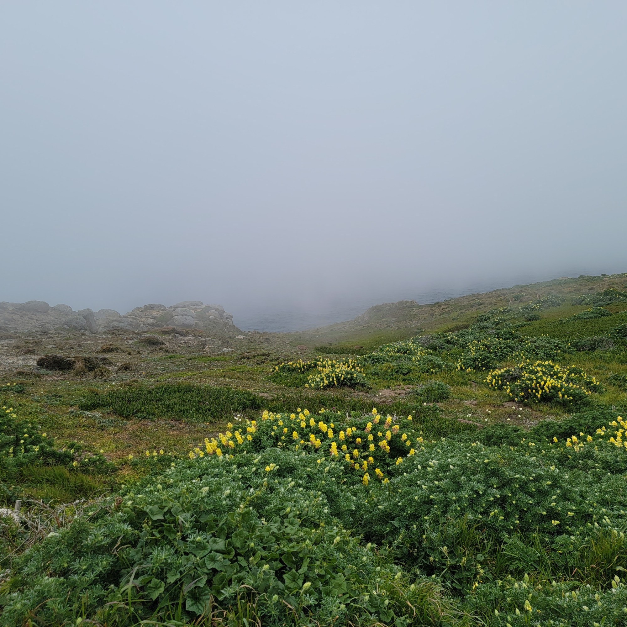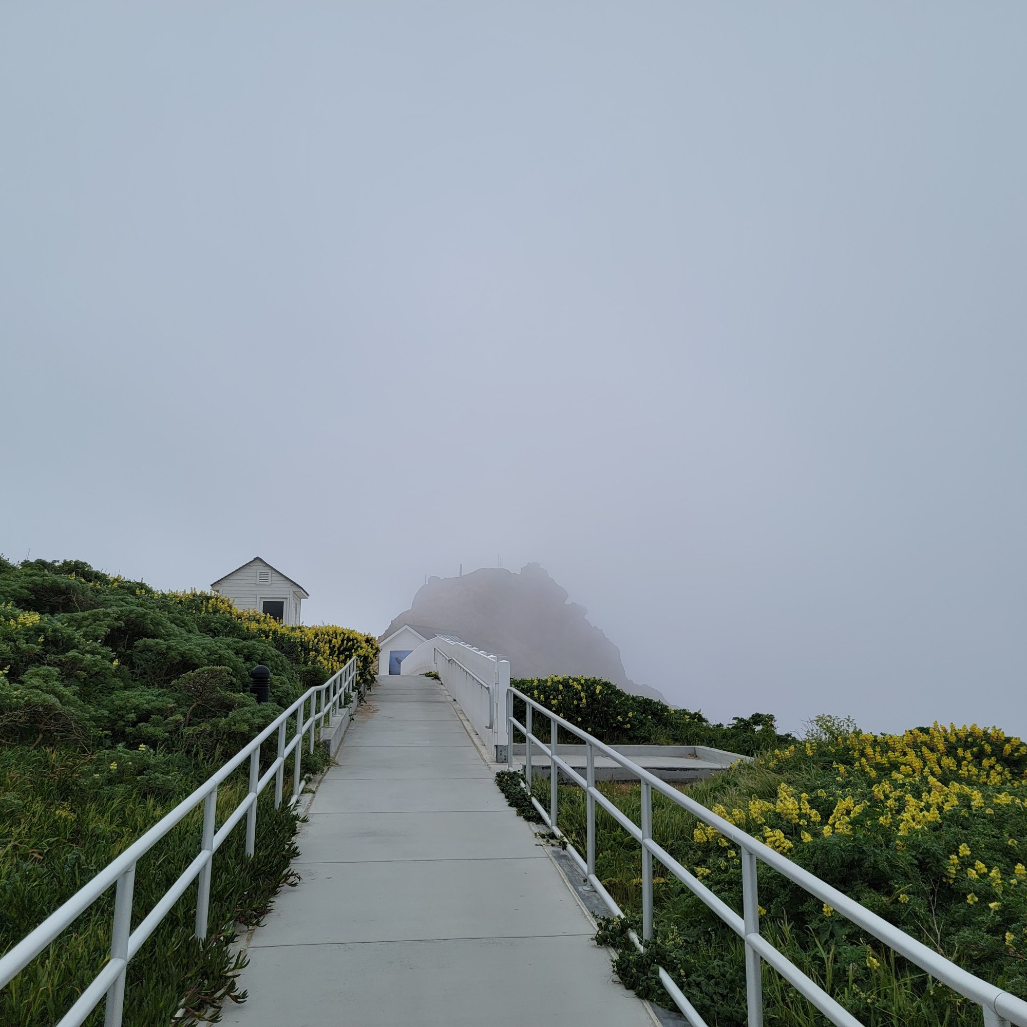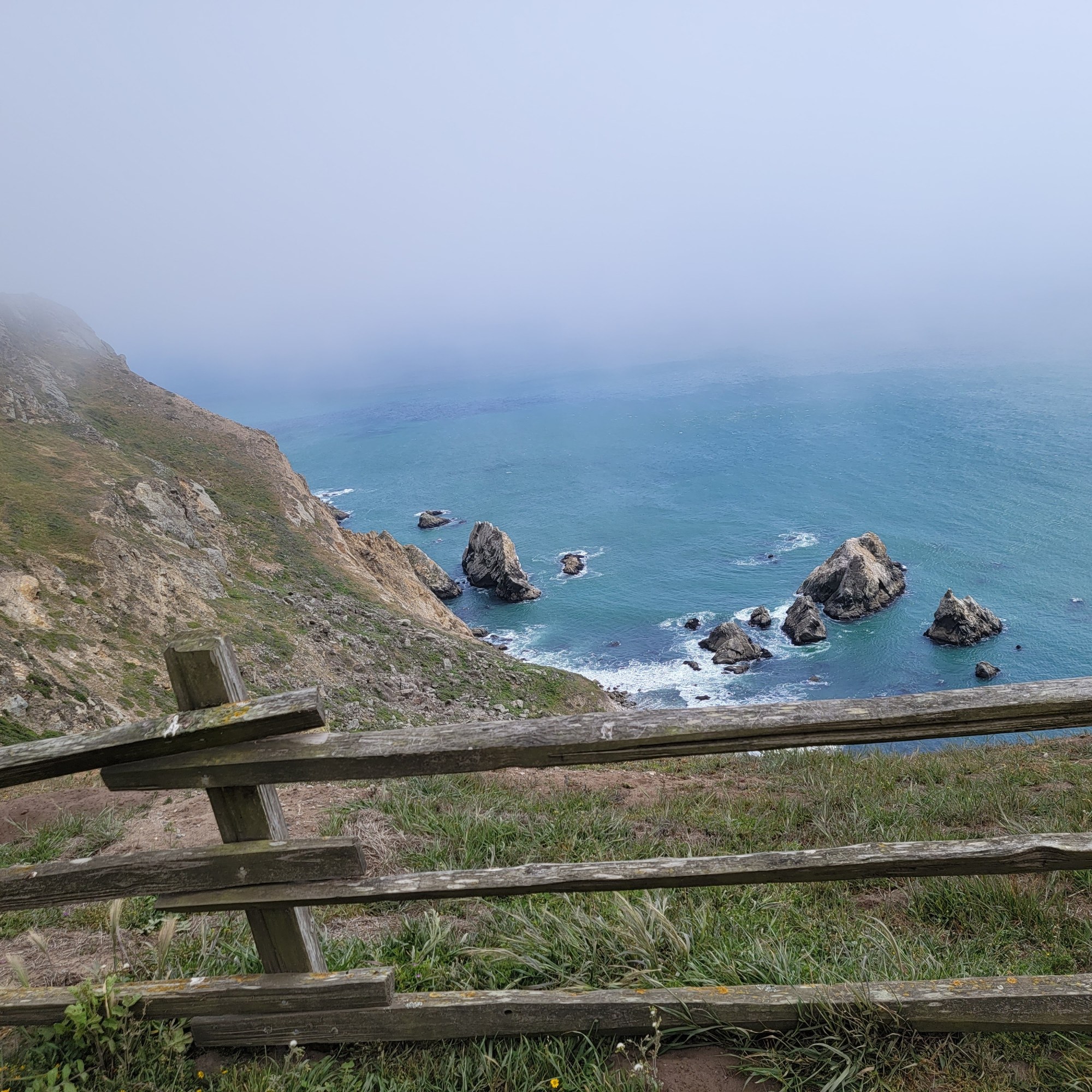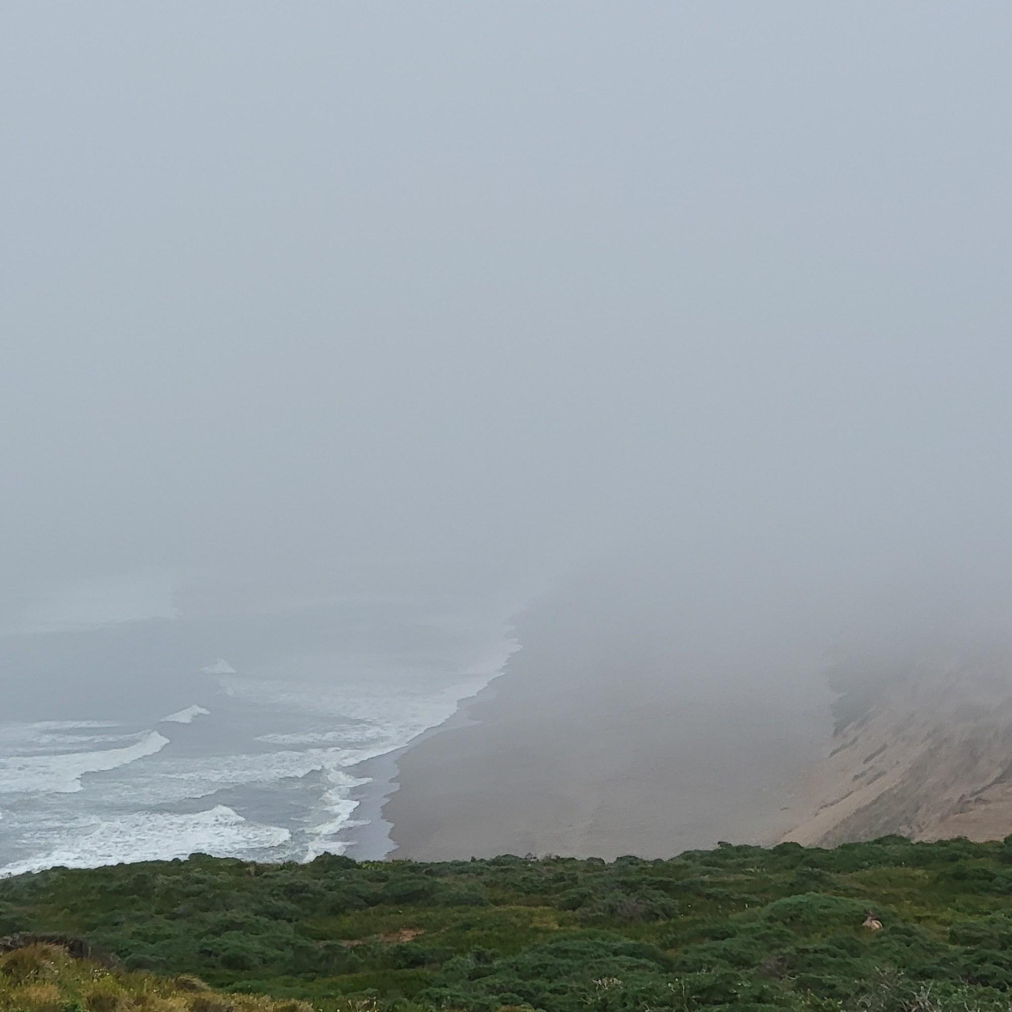 On Saturday, we spent the day at Point Reyes National Seashore and in the surrounding little towns. The day was beautiful inland, sunny and warm. However, the shoreline was foggy and damp. We drove along the coast, unable to see much of anything beyond land. Once we parked at the lighthouse parking area, we were able to talk approximately a 1/2 mile paved walk out to the lighthouse. At that point we could peer down over the craggy cliffs to see blue waters and a few people even spotted whales making their way to the surface! The lighthouse was closed due to Covid, but we were able to see the beautiful foggy coast and with that we were pleased. I imagine Point Reyes is stunning on a clear day for anyone who wishes to visit. Below are some foggy photos of what was viewable on our day of exploration.
