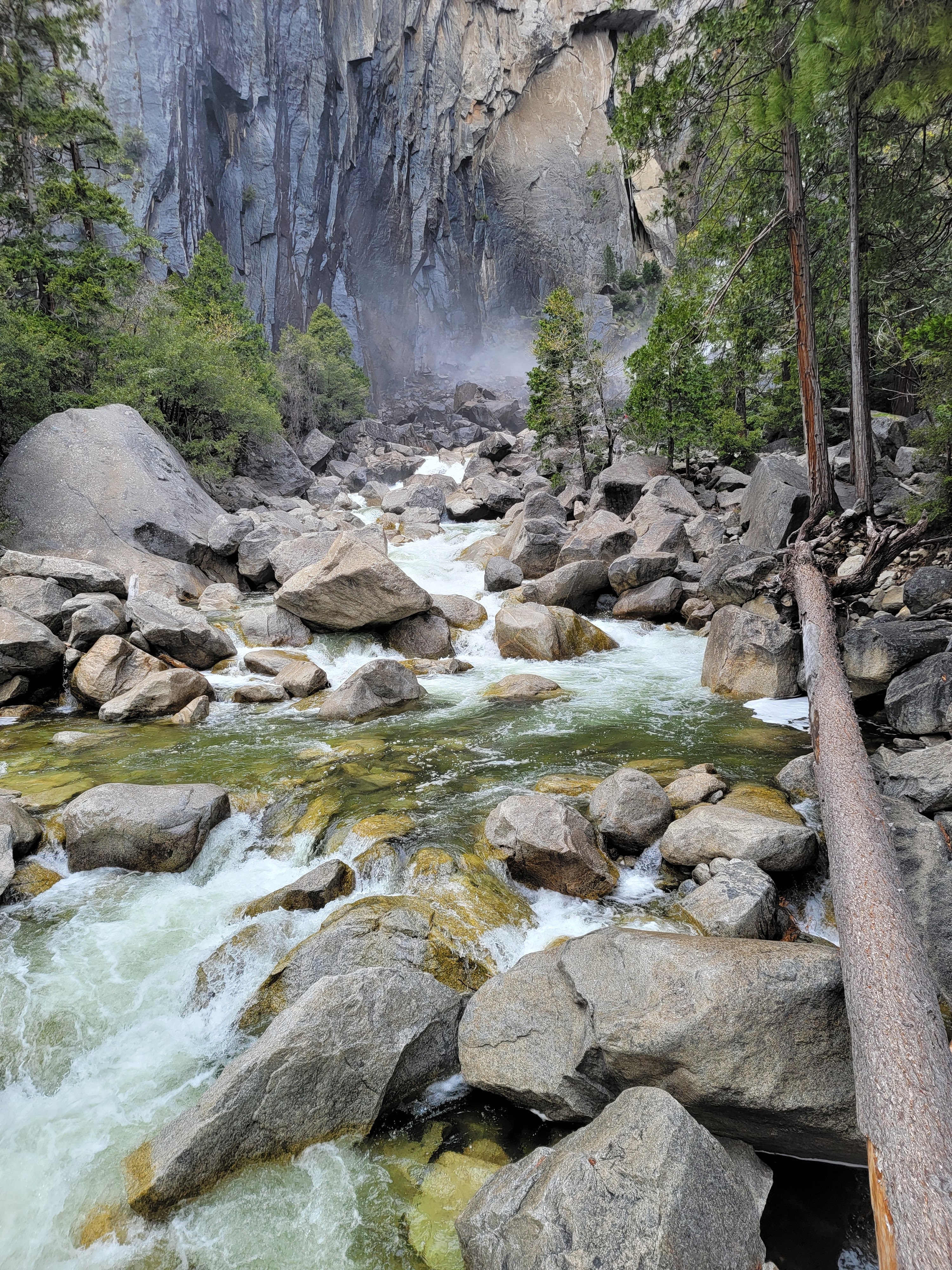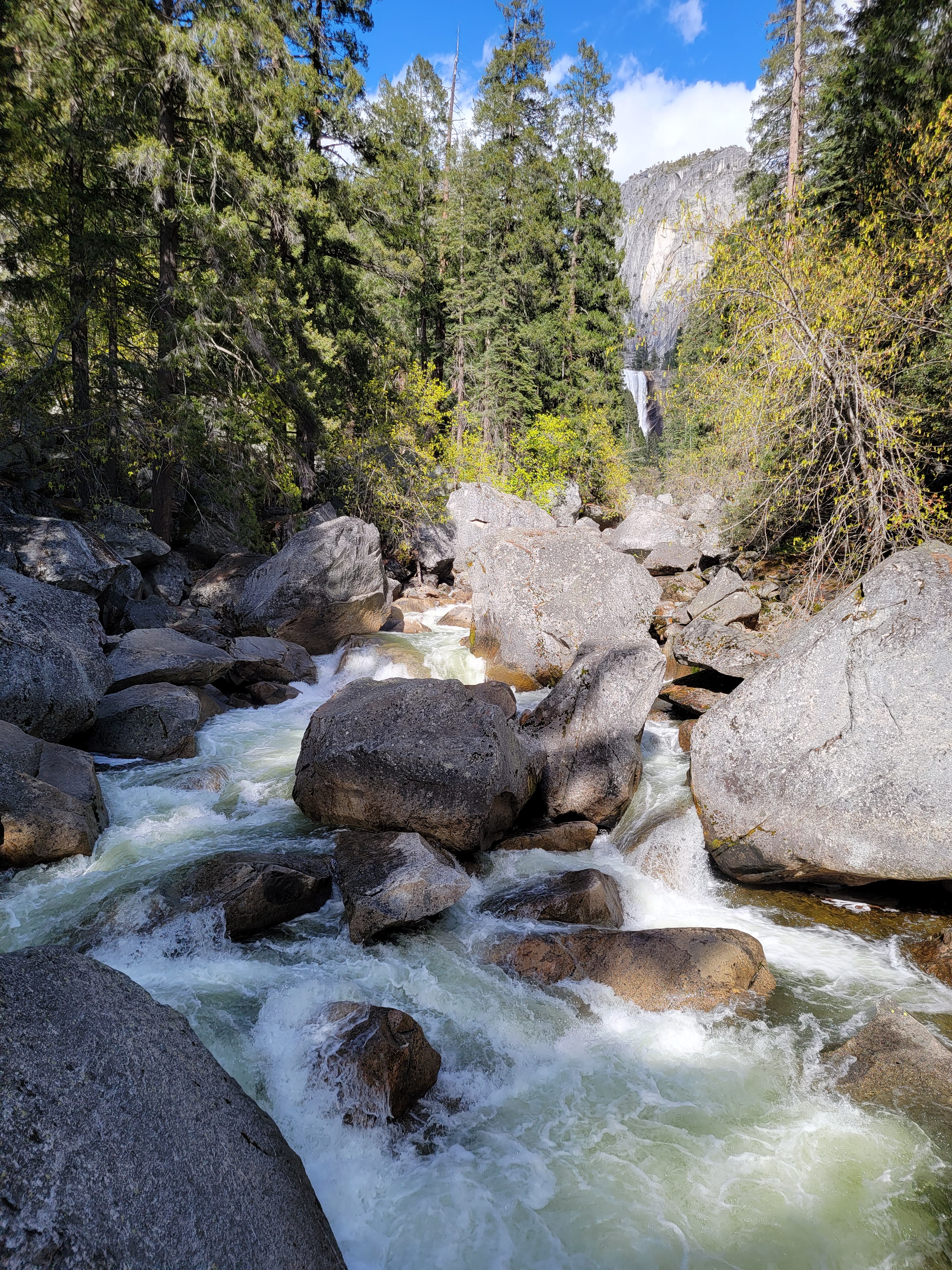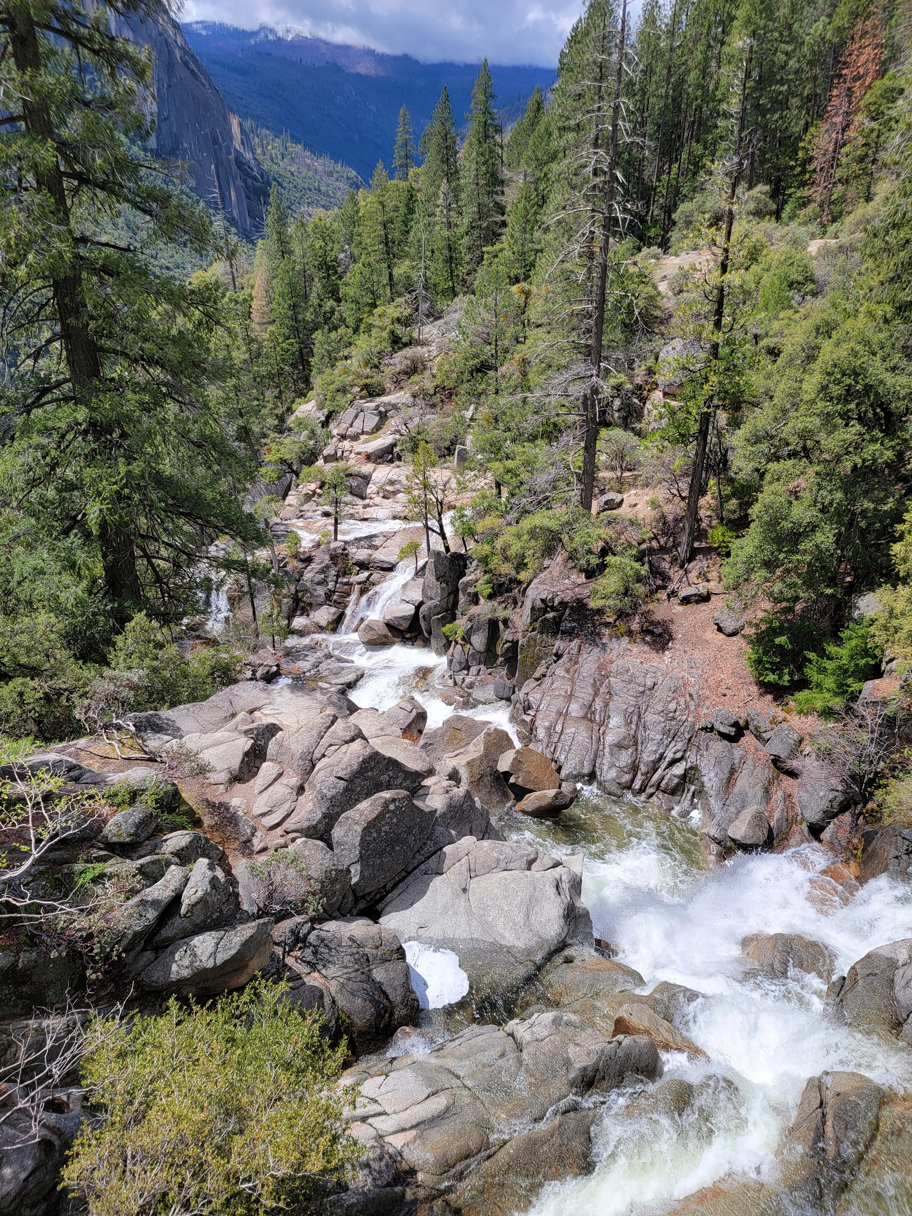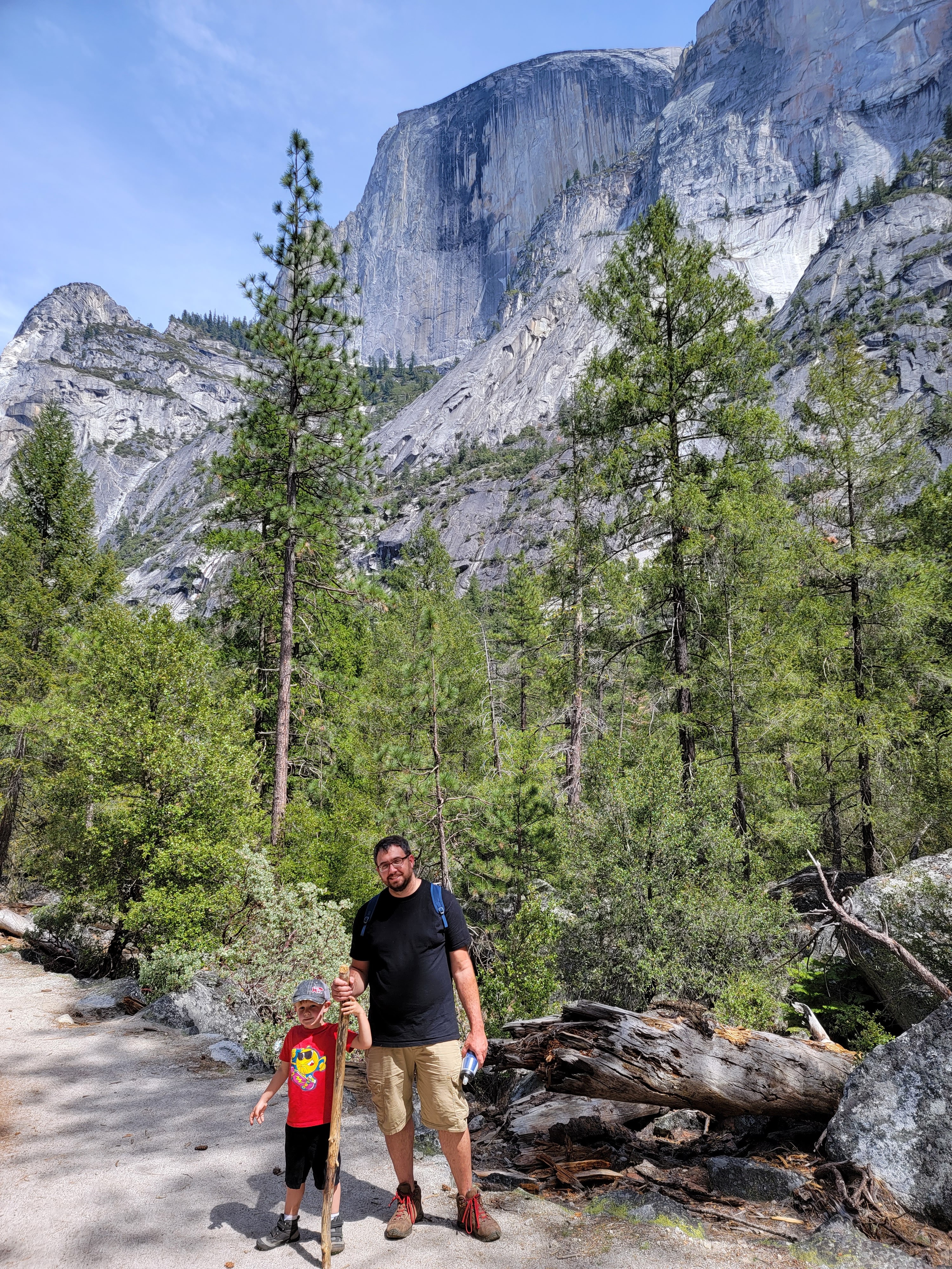 The Vernal Falls trail is absolutely breathtaking and I highly recommend taking this if you are an adult looking to hike without kids or if you feel comfortable hiking inclines with children in carrier. I hiked it with my 30 lb one year old on my back and it was not for the faint of heart. The entire distance to the lower falls is straight uphill, the return is downhill. The elevation change and extreme incline make this trail the most difficult we attempted. Our 4-year-old hiked it independently with several meltdowns, but he did it! Once you reach the lower falls (the bridge), you have a choice to continue to the top for a better view. I was told to avoid doing the top with children as there are many steps that are consistently sprayed from the waterfall and are slippery to all, but particularly young kids. The bottom of the fall was enough for us! You get a small view of the falls with great views of boulders and the water rushing through. One thing we greatly enjoyed about this trail was the amazing views on the way to the falls as you can see below.