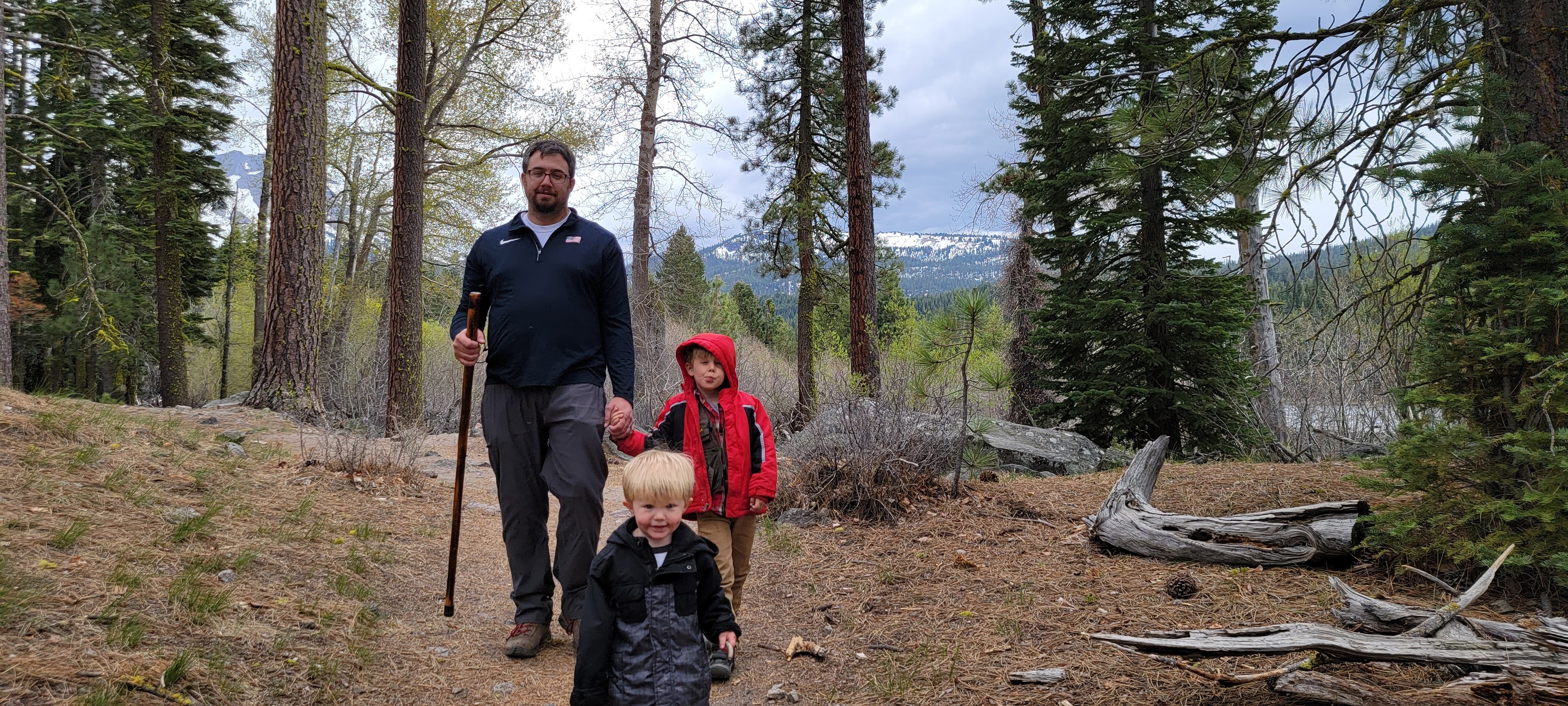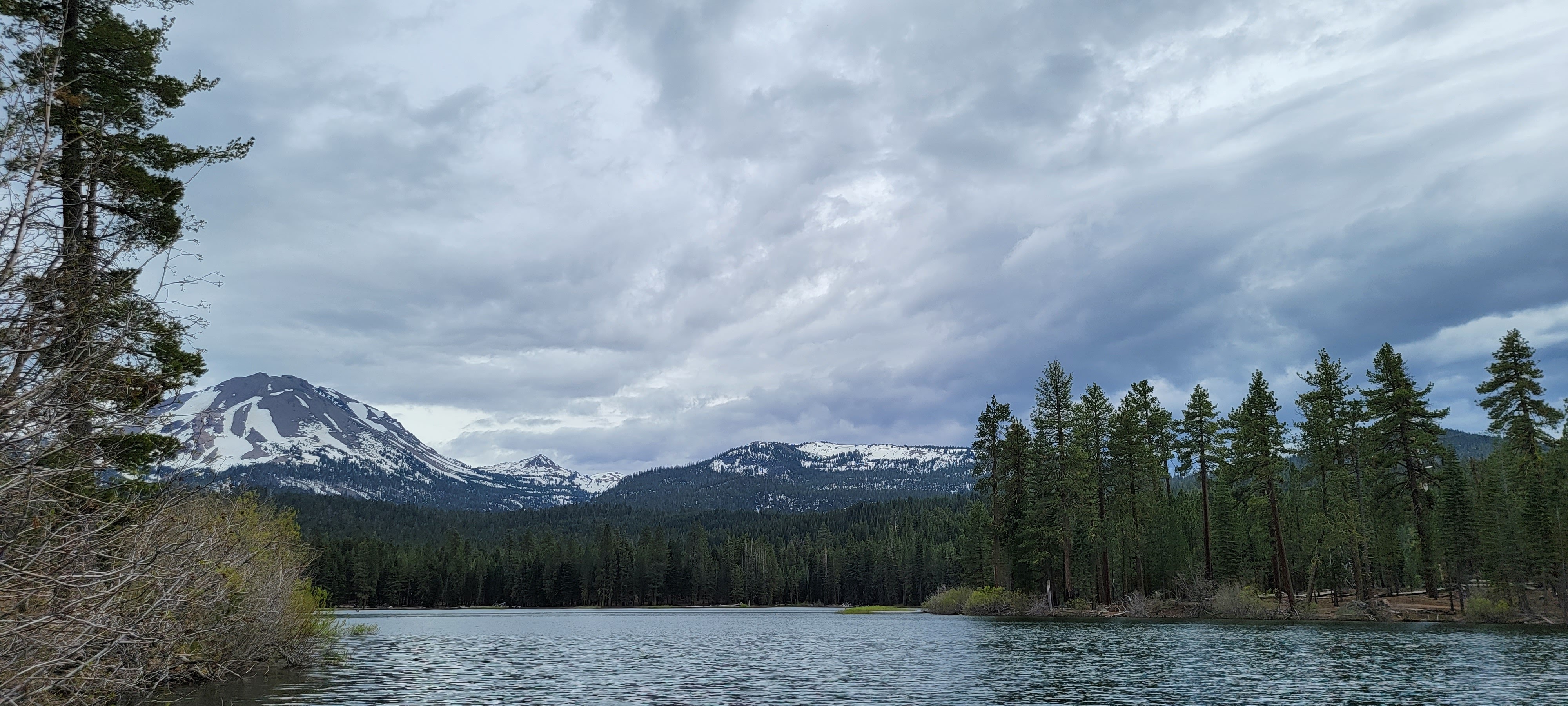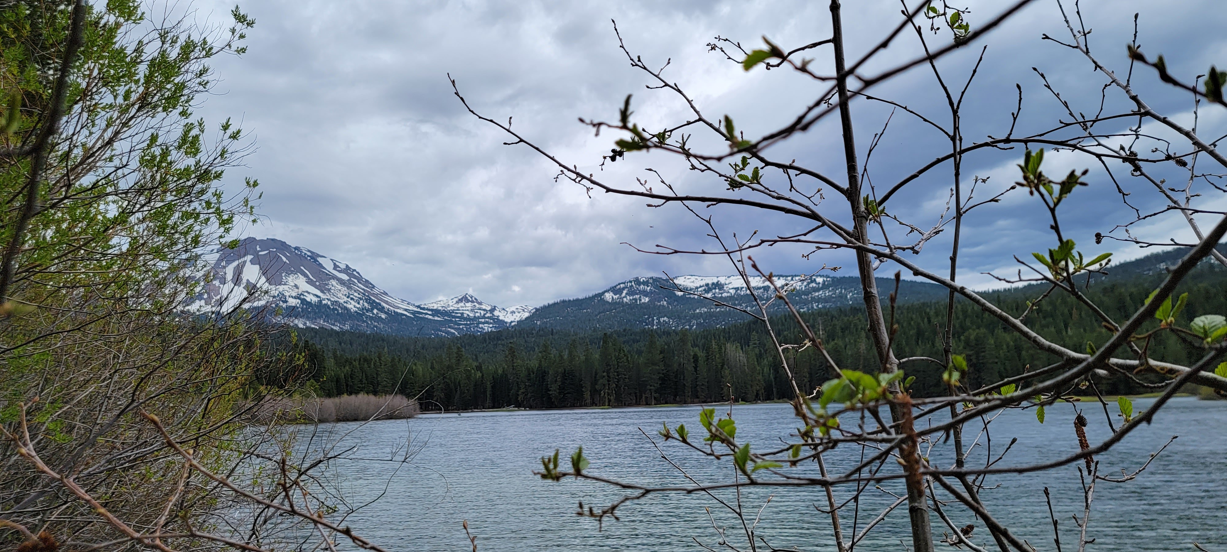 We took the Manzanita Lake trail which was a 1.8 mile loop and perfect for viewing the snowy peaks. The boys were pretty bored this trip, apparently the views weren’t quite as thrilling as they had hoped. However, the bridge and a log made into a bench provided at least a little entertainment towards the end of the loop. The boys much prefer the occasional stump or log to jump on, kudos to Lassen for keeping their trails impeccable, much to my bored boys’ dismay. The lake was so tranquil and crystal clear that I imagine on a clearer day the sky’s reflection in the glass. It’s the perfect trail to walk alone to contemplate life with it’s quiet pine needle softened path. However, we had some wild minions with us who did no such reflection… in fact they were having a day of tantrums…