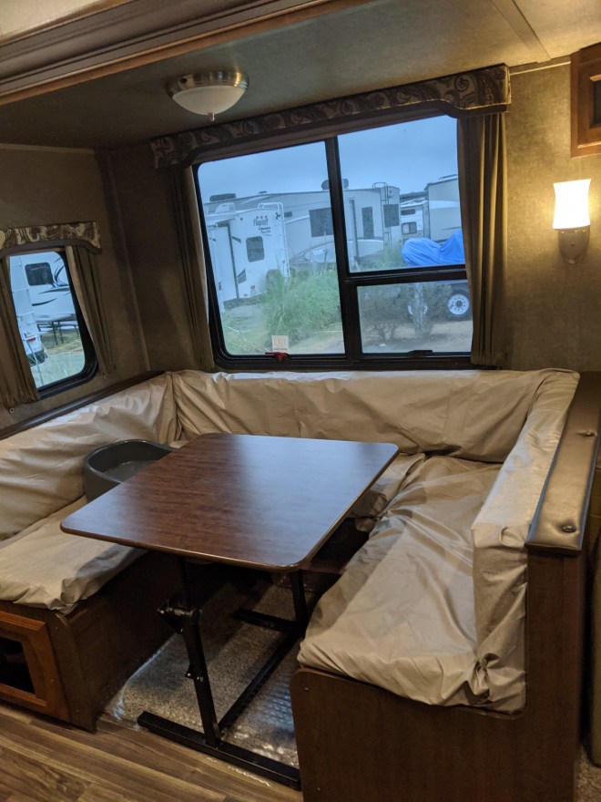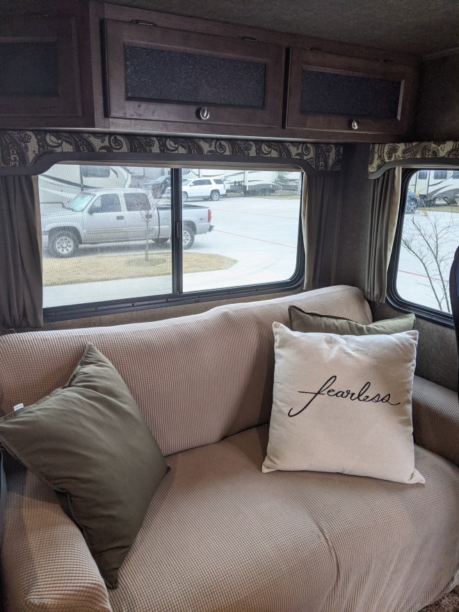 Windows on either side.