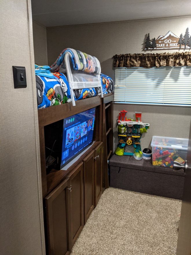 The bunk room with ottoman toybox.
